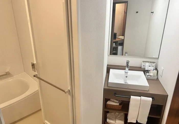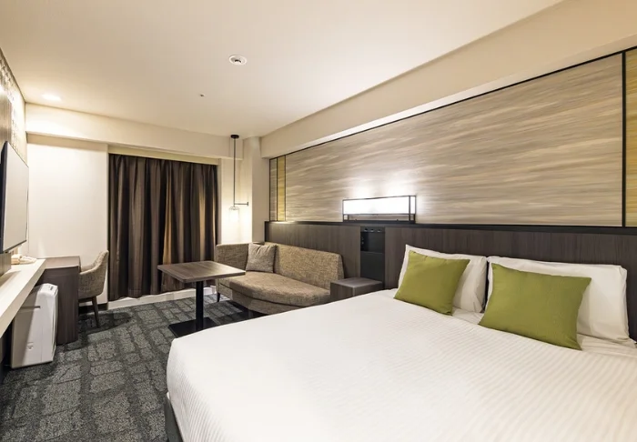 Your stay begins in a spacious Standard Room, furnished with functional fittings and a simple Japanese aesthetic. The room comes equipped with Wi-Fi, a TV, air conditioning, a mini fridge, a kettle, tea and coffee-making facilities, and a safety box. The bathroom features a washlet toilet, a bath with a shower, a hairdryer, and a selection of carefully chosen toiletries for your use.
