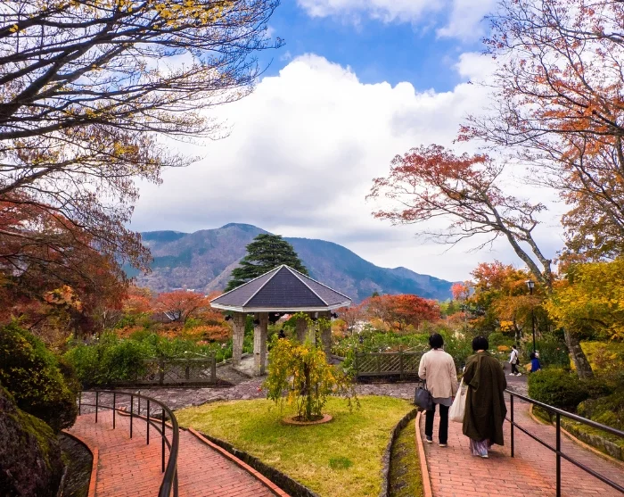 Within walking distance, you’ll find Hakone Gora Park – a beautifully landscaped garden with terraces, fountains, and views of the surrounding mountains. Take a leisurely stroll among the flowers, greenhouses, and small pavilions, or sit down and enjoy the peaceful atmosphere after a day of travel. You can also visit the Hakone Museum of Art, renowned for its exquisite collection of Japanese ceramics and its lovely gardens, where the moss garden in particular creates a serene and special ambience.