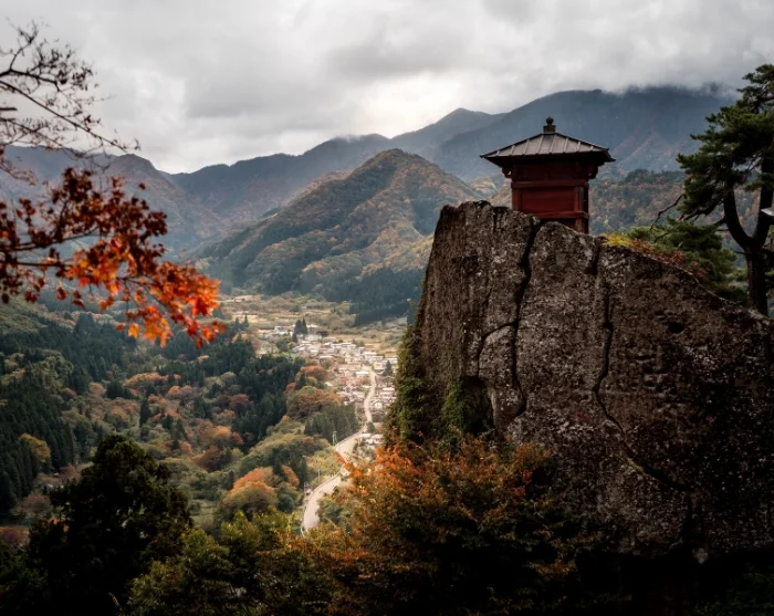 From the station, you’ll walk uphill towards the Yamadera Temple, which clings dramatically to the mountainside. You’ll follow a path of several hundred stone steps, worn smooth over the centuries by monks and pilgrims. The path winds its way through enchanting surroundings of tall cedar trees and an almost unshakable sense of calm. Along the way, you’ll pass small moss-covered shrines and viewpoints where you can pause, catch your breath, and take in the breathtaking scenery.