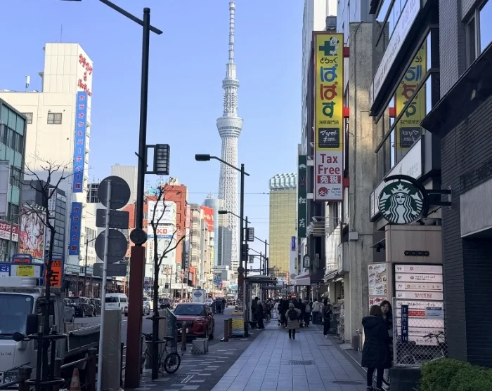 Start your exploration in the lively Asakusa district, home to Tokyo’s oldest and most famous temple, Senso-ji. On your way to the temple, stroll along Nakamise-dori, where the scent of freshly made snacks mingles with the allure of stalls brimming with lucky charms, fans, and local treats. Just a few streets away, a completely different calm prevails on Kappabashi Street, where small shops sell Japanese porcelain and chef’s knives side by side. Look up and you’ll see the Tokyo Skytree towering into the sky as a symbol of modern Tokyo. You may simply admire it from below or, with a ticket in hand, head to the top for an unforgettable panoramic view of the metropolis.