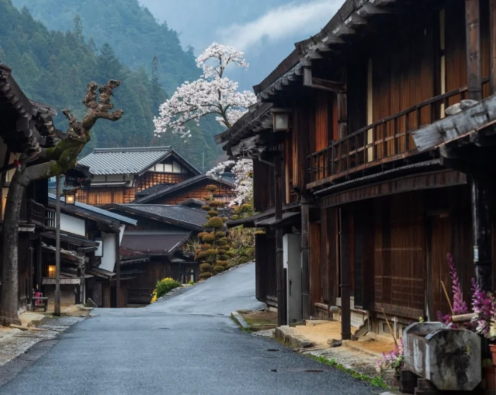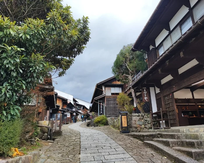 After around two hours of walking, you’ll arrive in Tsumago, one of Japan’s best-preserved post towns, where old wooden houses, inns, and merchant homes give you the feeling of stepping several centuries back in time. You can wander through the narrow lanes, peek into small shops, and admire the traditional façades as your guide shares stories of what life was like along Japan’s important travel routes during the Edo period.