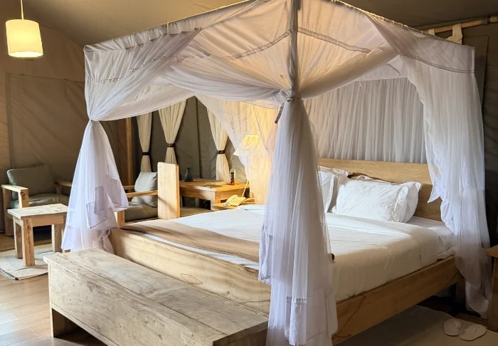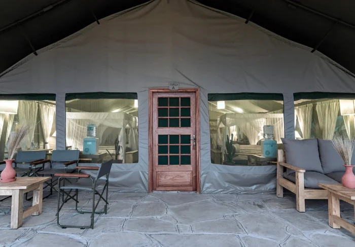 The tents are spacious, offering plenty of room for your luggage, and are delightfully furnished. Each tent features its own veranda and solid flooring both inside and out, giving the impression of staying in a proper room – only with canvas walls. There is Wi-Fi in every tent.