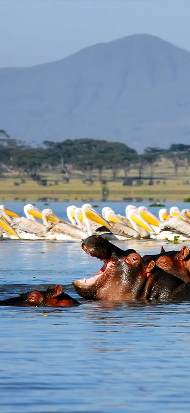 From here, the tour goes through Great Rift Valley to Lake Naivasha. A boat trip awaits you on the lake, which is especially known for its hippos and rich wildlife.