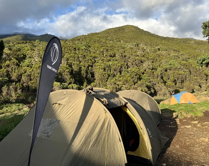 Today takes you through the last section of the rainforest; the heath landscape soon opens up before you and the paths become rockier. Your route takes you over the Shira Plateau, from where you can see Kilimanjaro’s Western Breach – the westernmost crater edge with its amazing glacier. You are now to the west of the extinct volcano Kibo, on the opposite side of the Marangu route, and following a short hike to the west you will arrive at Shira 2 Camp.