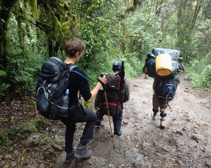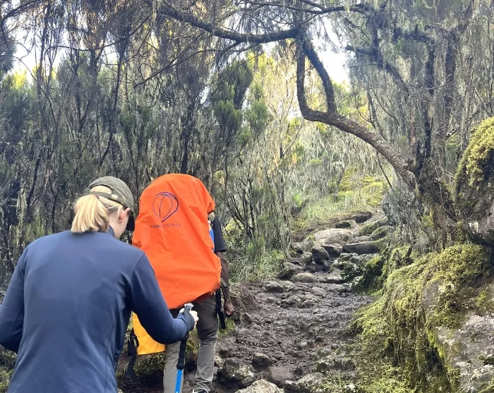 It is then time to start your descent to Barafu Camp, which takes approx. 3 hours. When you arrive there, you can enjoy a short, well-deserved rest before continuing along the rocky trail to Mweka Camp – and a much-needed night’s sleep! The camp is situated in the upper reaches of the rainforest, so the weather is often foggy and rainy late in the afternoon. The absolute highlights here are the promise of hot water and a hot meal!