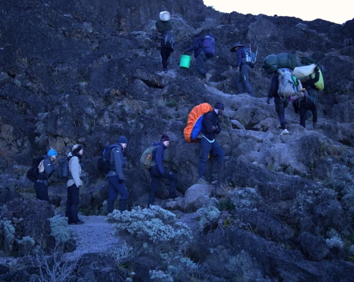 Both the terrain and the altitude will make today’s stage physically and mentally challenging, so take your time and listen to your body. Even though you will finish the day ‘just’ 110 metres higher up than you started, the route involves climbing 790 metres higher than that at Lava Tower before the descent to Barranco Camp. A lot of people experience the first signs of altitude sickness at these heights, so please watch out for the slightest sign and inform your guide without delay.