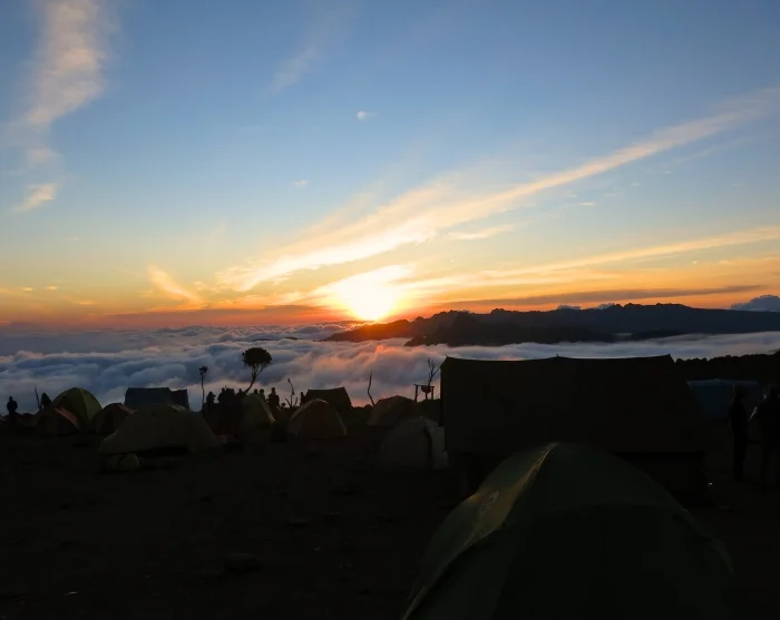 After lunch at the foot of the Lava Tower, it is time to descend to Barranco Camp, which is located in a valley below the Great Barranco Wall. If the weather gods are kind, you can look forward to watching a truly stunning sunset from Barranco Camp, and to enjoying a magnificent view of the top of Kilimanjaro, a wonderful look down the side of the mountain to the valley, and – farther to the east – the Great Barranco Wall which rises up fully 300 metres.