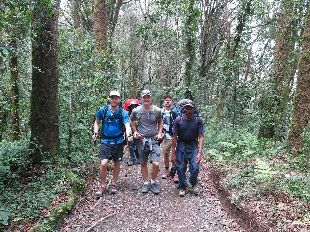 The final walking stage is an easy 3-hour stroll through the national park to Mweka Gate, where you check out before being picked up and driven back to the village of Moshi. A tasty lunch awaits you at the hotel, as well as something you have been looking forward to for days: a wonderfully hot bath. Everyone who has completed the climb is awarded a diploma.