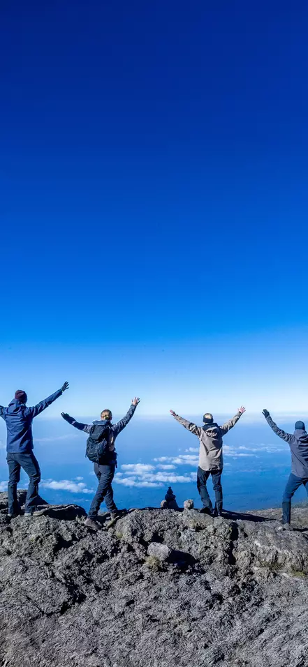 Surrounded by the Tanzanian savannah, the tallest peak in Africa rises to a height of 5,895 metres above sea level. Our destination is Uhuru Peak. You don’t have to be an experienced climber to scale this majestic mountain, you simply need to be reasonably fit and have the proper equipment. And a determined mindset. Being able to say that you have climbed the highest mountain in Africa is often sufficient motivation in and of itself.