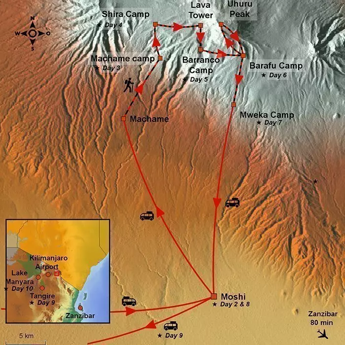 The goal of this tour is the peak of Kilimanjaro on the renowned Machame route. The reward and relaxation await on the white sandy beaches on the exotic island of Zanzibar.