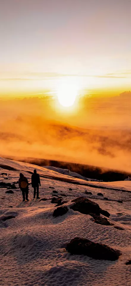 You will now find yourself walking through the almost lunar landscape that is known as ‘The Saddle’ and links Mawenzi and Kibo. On arrival at Kibo Huts, located at the foot of the Kibo crater wall, it is time to ready your equipment and warm clothes for the next day’s trek to the peak. Make sure to store your drinking water in a Thermos to prevent it freezing solid. Then spend the rest of the day relaxing and go to bed early to ensure your ‘human batteries’ are fully charged for Kilimanjaro’s ultimate challenge.