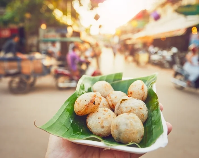 Siem Reap is a charming, laid-back town, perfect for a leisurely stroll through the French Quarter or beneath the shady trees along the Siem Reap River. You’ll discover small shops, cafés, and bustling markets. In the evening, be sure to explore the vibrant night market, where the aroma of Khmer delicacies is truly tempting. Sample some delicious grilled meat or a spicy noodle dish and join the locals on a stool to enjoy a snack. If you’re feeling a little adventurous, why not try some grilled crickets on a skewer?