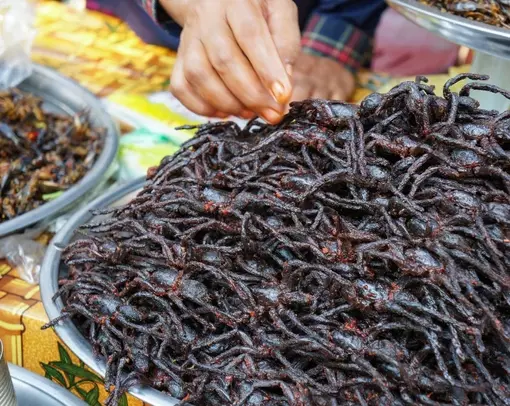 From Siem Reap, you will continue south towards the capital through a beautiful landscape of paddy fields and small villages. The route partly follows the shore of Tonlé Sap Lake, and you’ll stop off in Skuon, a town famed for its distinctive Cambodian delicacies.
