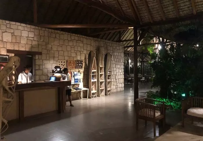Le Paradisier is an ecolodge in the literal sense of the word. It is 100% powered by solar energy, so you will not find a lot of unnecessary electrical appliances in the 20 cabins. The cabins, which are built of stone and have thatched roofs and, of course, the most beautiful rosewood floor, are characterised by their spartan furnishings. The beds are comfortable and fitted with mosquito nets, and all the cabins obviously have an en suite bathroom and a small terrace at the front. There is no air conditioning (but a small fan), minibar or Nespresso machine – on the other hand the sea is right outside your door. There is one socket in the bathroom where you can charge your phone, otherwise there is a charging station at reception.