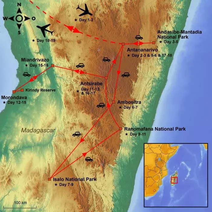 Today, your tour will begin with departure from your selected airport, with connecting flight(s) along the way. Your journey will take you to the spectacular island of Madagascar, the great red island in the Indian Ocean.