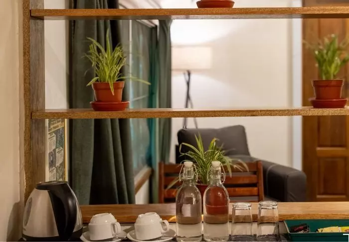 The rooms at Areca Hotel are spacious and tastefully decorated with a touch of historical charm. Each room is equipped with modern amenities such as air conditioning, Wi-Fi, a flat-screen TV, a minibar, and tea and coffee facilities. The large windows allow plenty of natural light, and the en-suite bathroom is fitted with a shower and toiletries.
