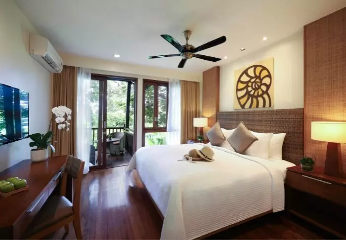 At Berjaya Langkawi, you will find a wonderful balance between rustic charm and modern comfort. As is standard, you will stay in a ‘Rainforest chalet’, which is built on stilts in the lush rainforest and gives you the feeling of being one with nature. The rooms have a private balcony where you can sit and enjoy the sounds of the forest. The décor is neat and inviting and harmonises perfectly with the surroundings, where wooden details and warm colour shades create a cozy and relaxing atmosphere. Here, you have all the modern conveniences needed to ensure a comfortable stay: air conditioning, Wi-Fi, a mini-fridge, a safety box, a tea and coffee making station, and a flat-screen TV. The bathroom is equipped with a rain shower, hairdryer, and toiletries.
