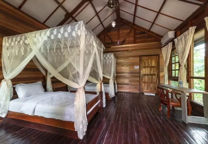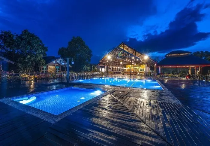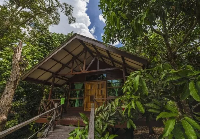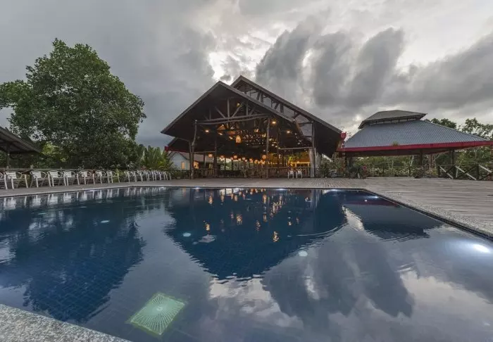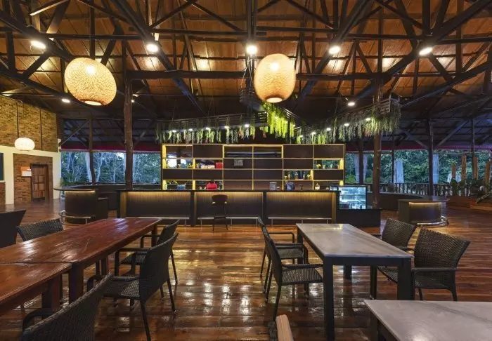 After darkness has fallen, you can conclude the day with a drink in the resort’s atmospheric bar before retiring to the lodge to the sound of the rainforest’s nocturnal animals.