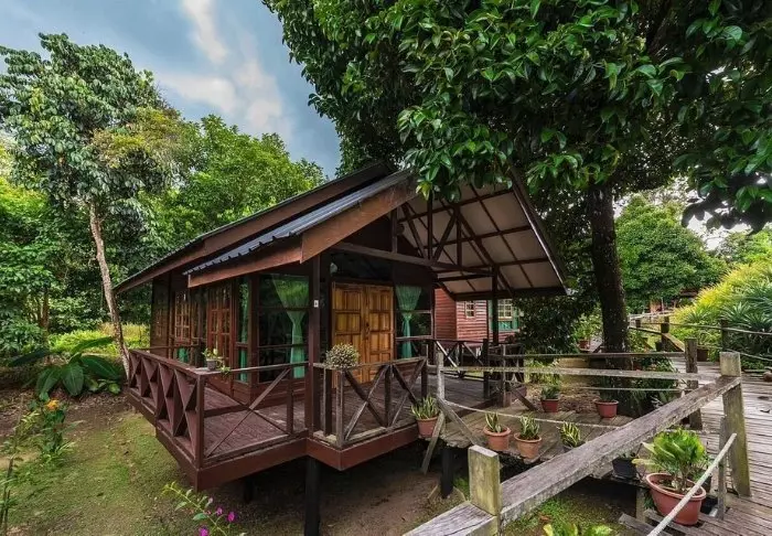 The resort is built in exclusive dark wood and discreetly blends in with the colour palette of the rainforest. Do not be fooled, though. Borneo Sepilok Rainforest Resort is a complete gem, where small details have been added to every part of the décor to create a special atmosphere. You will be staying in one of the resort’s spacious wooden cabins with its focus on comfort and quality.