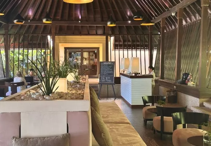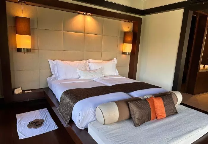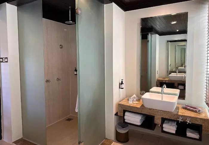 Framed by crystal-clear waters and lush rainforest, the resort offers the perfect balance between modern comfort and tropical surroundings. You’ll stay in one of the resort’s villas, beautifully integrated into the verdant hillside landscape, with a spacious interior featuring contemporary amenities. The villa’s large windows bring nature indoors and offer stunning views to enjoy while in the tranquillity of your private balcony. Inside, you’ll benefit from a walk-in wardrobe, air conditioning, Wi-Fi, a TV, a coffee and tea station, and a minibar. The bathroom is equipped with luxurious toiletries and a complementary bathrobe and slippers.