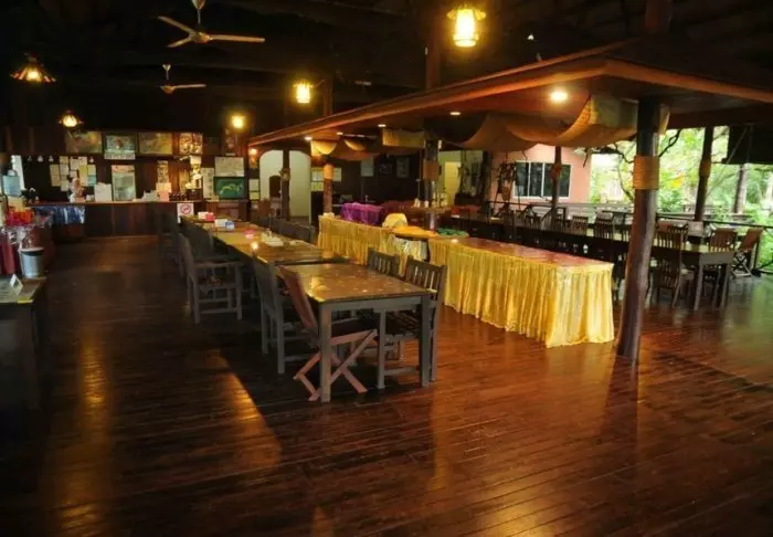 Your stay in one of the lodge’s 39 bungalows, equipped with a ceiling fan or air conditioning, provides access to a private bathroom with a hot shower and eco-friendly toiletries. From the adjoining wooden veranda, you can enjoy the silence and let yourself be captivated by the embracing greenery as you watch hornbills, which frequently nest on the lodge’s grounds.