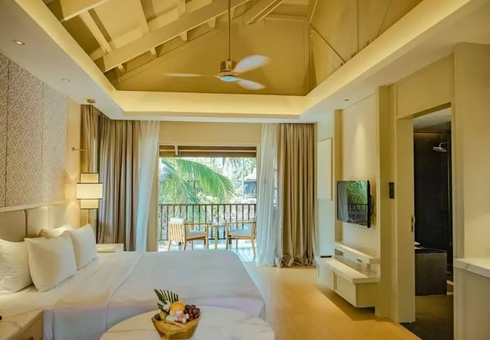 The resort’s numerous facilities include two swimming pools, one of which is set directly by the beach, a fully-equipped fitness centre, and a delightful spa area where you can indulge in a range of treatments inspired by local traditions. For younger guests, there’s a children’s pool, a water play area, and a playground, while the adventurous can try water sports like jet skiing or kayaking.