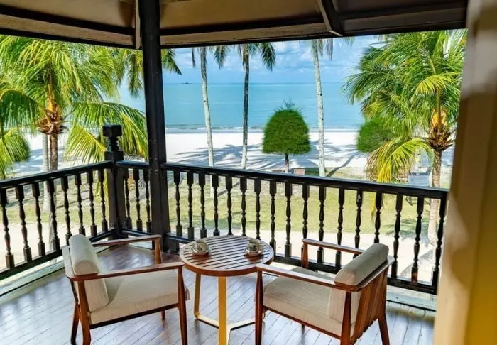 Pelangi Beach Resort & Spa boasts an exceptional location right on Langkawi’s famed Cenang Beach, on the island’s southwest coast. This area is known for its vibrant atmosphere and stunning views of the Andaman Sea. The expansive sandy beach stretches over a mile, and is bordered by swaying palm trees and crystal-clear waters that invite relaxation and fun in the water.