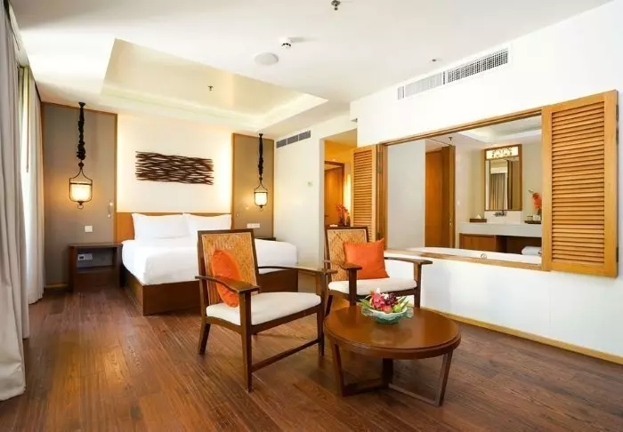 The resort’s suites are spacious and thoughtfully designed. Large windows invite in natural light and offer stunning views of the surrounding landscape. You will stay in the Damai Suite as standard, which features a king-size bed, a separate lounge area, and a luxurious bathroom with a bathtub and rain shower. Additionally, the suites are equipped with modern amenities such as air conditioning, Wi-Fi, a minibar, a safety box, a flat-screen TV, and a tea and coffee station, ensuring a convenient base.