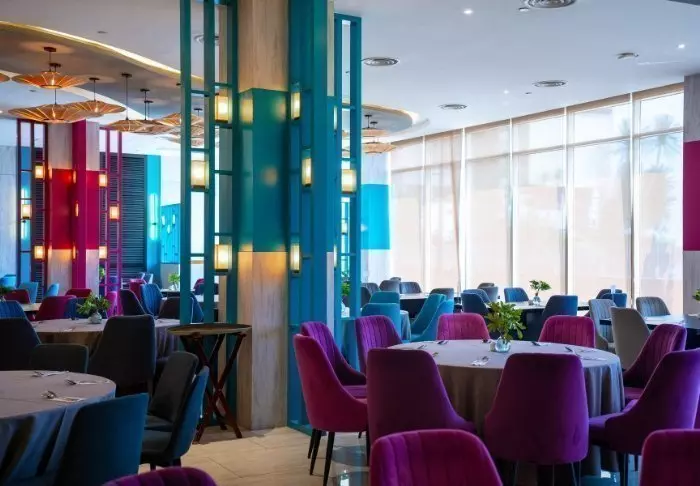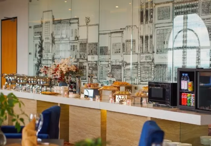Among the hotel’s many facilities, you’ll find an inviting swimming pool under a canopy, offering stunning views of the city’s vibrant life. You can relax by the poolside with a good book, and for those wanting to stay active, there’s a modern fitness centre that has everything needed for a good workout.