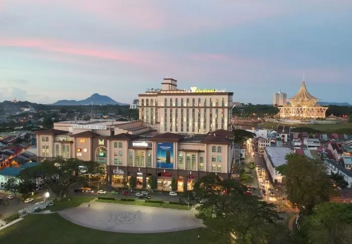 At The Waterfront Hotel, you will step into a world of modern elegance and cultural charm in the heart of Kuching. The hotel majestically graces the skyline, positioned atop one of Kuching’s leading shopping centres, the Plaza Merdeka Shopping Center.