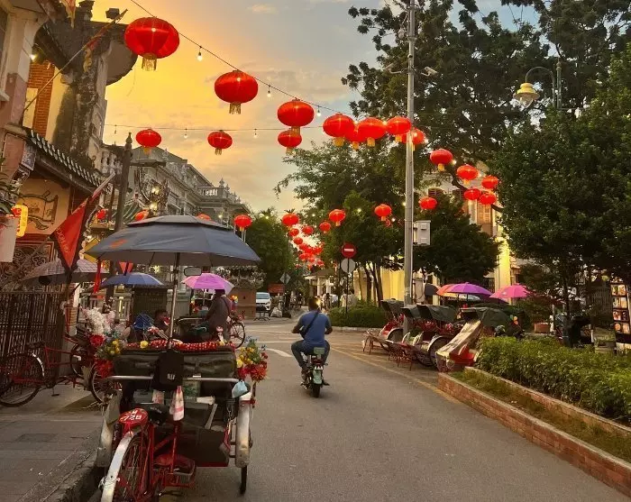 The day concludes at the street food market Red Garden Food Paradise, which gathers Penang’s rich culinary culture in one place. Here, you will find everything from classic Penang dishes such as char kway teow (fried noodle dish), laksa (noodle soup), and satay to Japanese sushi, Thai dishes, and Western favourites. The market is outdoors, but covered, and offers a relaxed atmosphere where you can enjoy your meal under light chains and in the company of both locals and other travellers.