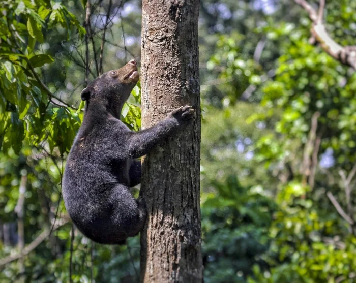 Leaving the world of orangutans, you’ll head next door to the Sun Bear Conservation Centre to encounter the sun bear. This is the smallest bear species in the world, easily recognised by its short, jet-black fur and the bright, crescent-shaped marking on its chest—reminiscent of a rising sun, which is how it got its name. The centre plays a pivotal role in the effort to ensure these sun bears have a future in Borneo’s rainforests, preserving their natural habitat for generations to come.