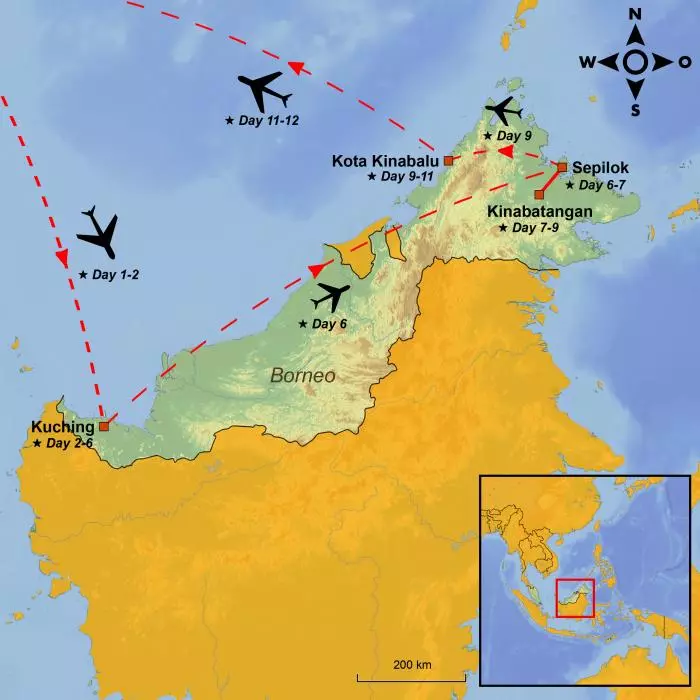 Today, you take the first step on your adventure to Borneo. Departure is from your chosen airport, and the flights include connecting flights along the way.