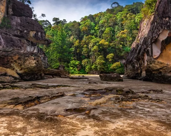 After breakfast, your guide will pick you up and drive you to Bako Fishing Village, where you’ll take a traditional longboat along the river to the national park. Along the way, you might be lucky enough to spot estuarine crocodiles and sea eagles before you arrive at the park itself. On your journey, which involves some ups and downs, it’s important to keep your eyes peeled, as the national park’s unique wildlife includes silvered langurs, long-tailed macaques, bearded pigs, monitor lizards, snakes, and a host of bird species. Upon arrival, you’ll set off on the extensive trail system through the rainforest, where you can explore the park’s diverse vegetation, ranging from mangrove to tropical swamp, rocky, and beach vegetation.