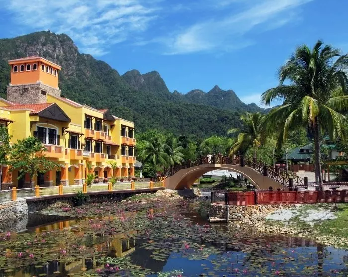 Should you unexpectedly tire of lounging, you can visit the Oriental Village, a theme park constructed like an Asian village with colourful buildings, shops, restaurants, and various activities. The Oriental Village also serves as the starting point for the Langkawi Cable Car, which takes you up to the top of Mount Mat Cincang, where you can walk across the famous Langkawi Sky Bridge with spectacular views over the island and the Andaman Sea.
