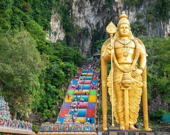 From vibrant city life, the journey continues towards stunning nature experiences as you head to the Cameron Highlands, with a stop at the Hindu shrine, the Batu Caves.