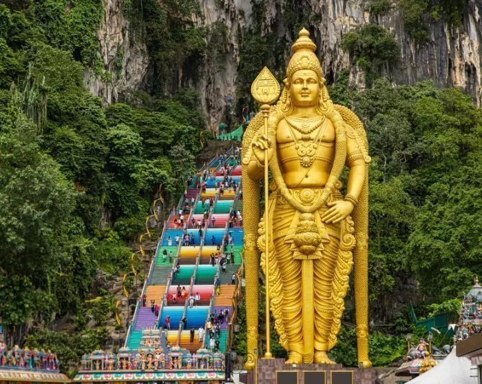 You might also choose to pause and immerse yourself in Kuala Lumpur’s green oasis, Perdana Botanical Gardens. Enjoy a tranquil moment amidst fragrant flowers and an impressive birdlife. Another great natural experience awaits at Batu Caves, located just outside the city centre. This vast limestone cave, adorned with brightly coloured Hindu temples and guarded by the colossal Lord Murugan statue, is a memorable visit. As you ascend the many rainbow-hued steps to the top, the sense of history and the coolness of the cave envelop you, creating an experience to treasure.