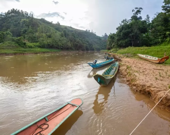 For your stay in the rainforest, you won’t need to pack too much. Opt for a lightweight backpack or a smaller bag and leave your suitcase behind at your hotel. From there, you’ll be picked up and driven roughly 5 hours towards Batang Ai National Park, with a stop on the way at Lachau Bazaar, where you can wander among small shops and a quaint local market. Enjoy an early lunch in one of the cosy local coffee shops before continuing on to Batang Ai Lake. Here, you’ll board a traditional longboat, which will carry you away from civilisation to the riverside home of the Iban tribe, where even phone signals yield to the unspoiled nature. The boat ride takes about 1.5 hours.