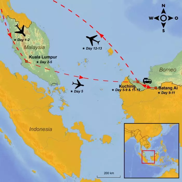 Your journey begins in the charming capital of Malaysia, Kuala Lumpur, and continues into the Malaysian state of Sarawak on Borneo, promising unforgettable memories and a deeper cultural understanding of this fascinating part of the world.