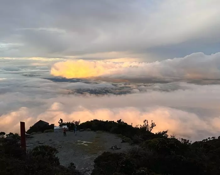 As you approach Low’s Peak (4,095 metres), daylight slowly begins to appear. Reaching the summit, if the weather permits, you’re rewarded with a spectacular sunrise painting the sky in pink and golden hues as the surrounding mountains start to emerge. The view from the summit is nothing short of breathtaking, so take your time to savour the moment and immerse yourself in nature’s unfiltered beauty.