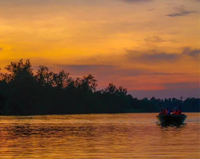 Later in the afternoon, you’re invited on yet another boat trip before day turns to night. As the boat chugs along, your guide shares insights about the rainforest and helps you spot its surrounding flora and fauna. Once again, you might be lucky to witness the rainforest’s extraordinary wildlife, such as the saltwater crocodile appearing in the water or the silvered langur swinging from branch to branch in the treetops.