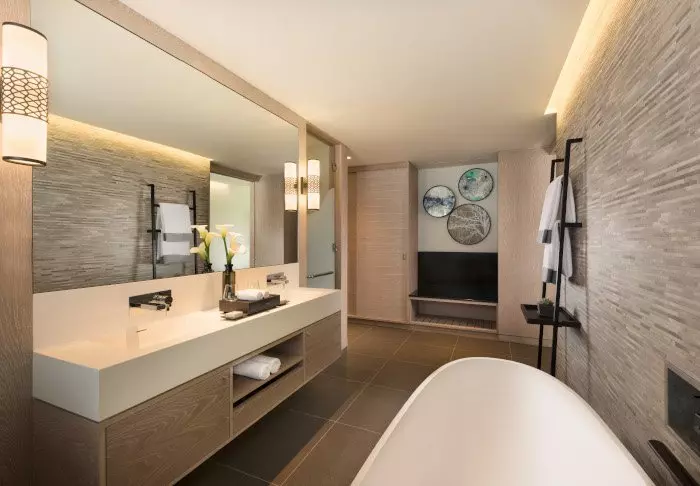 Like the entire hotel, the 190 rooms are stylishly appointed. They offer plenty of space and all have their own balcony or terrace, flat-screen TV, tea/coffee making facilities, minibar, iron and free Wi-Fi.