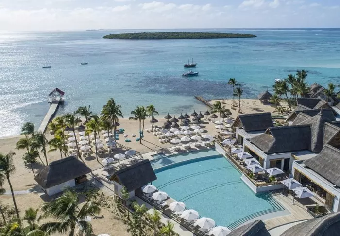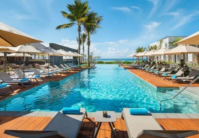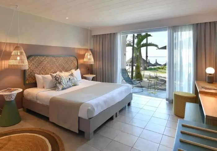 The hotel is located on one of Mauritius’s most beautiful beaches, Palmar Beach. Think chalk-white sand and turquoise sea.