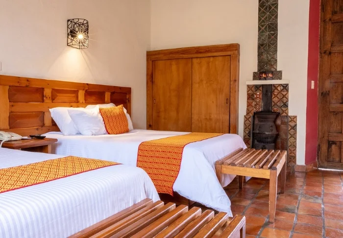 The hotel has 33 light and airy rooms, all decorated in a rustic Mexican style with wooden furniture and decorative details that add a relaxed, homely feel to the place.