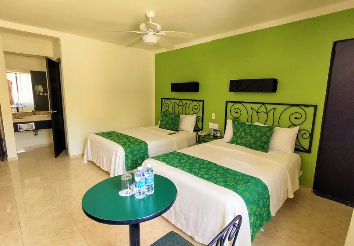 It boasts 52 rooms, each graced with a touch of Mexican style. The rooms are equipped with air conditioning, Wi-Fi, a TV, a safety box, and a bathroom complete with toiletries.