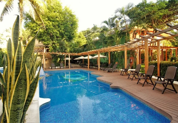 Take a refreshing dip in the pool, resembling a natural cenote, or enjoy a cool drink on a sun lounger under the sun’s rays.