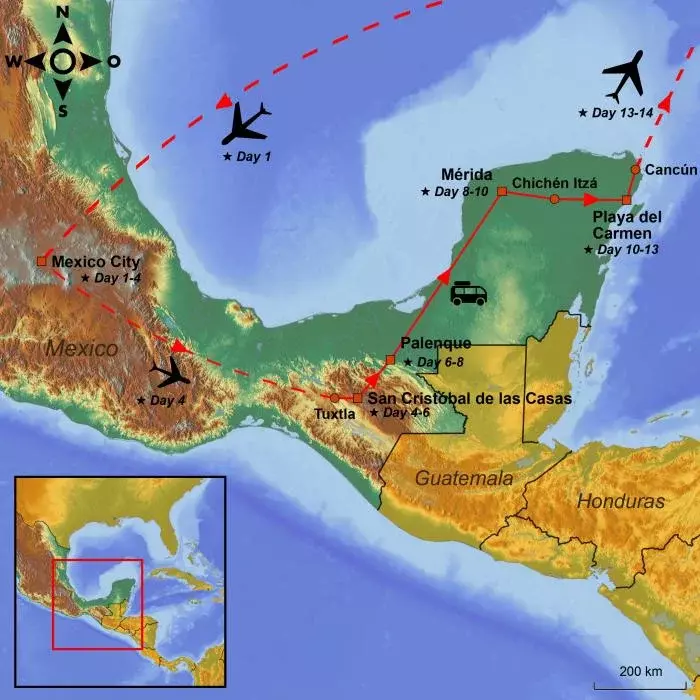 *Currently, gov.uk has a travel advisory on the road from San Cristóbal to Palenque via Agua Azul and Misol Ha waterfalls (Route 199) because it is often affected by demonstrations and roadblocks. As long as gov.uk advises against this route, we will change your program for this day and take you to Palenque by a different route via the town of Villahermosa. Unfortunately, you will not be able to visit the two waterfalls with this route change.