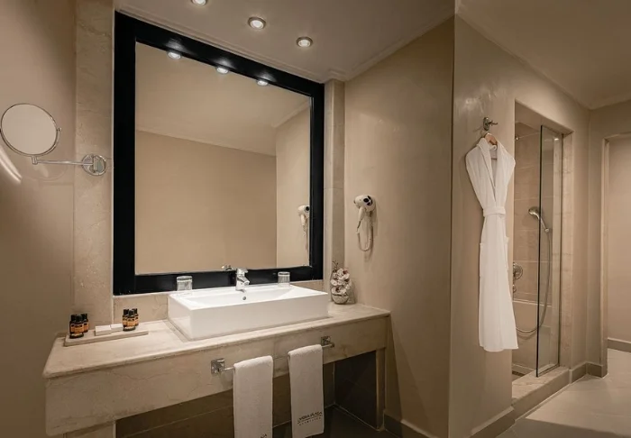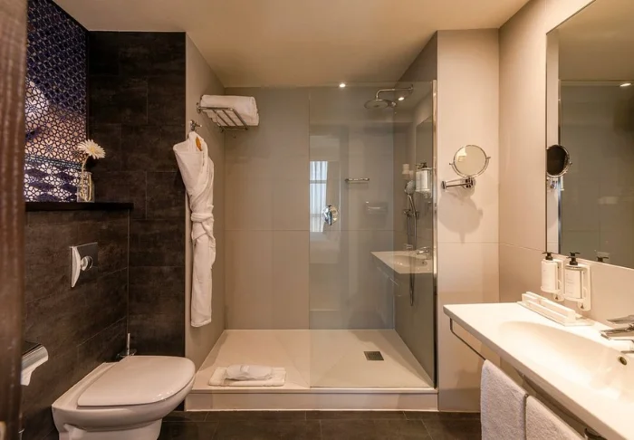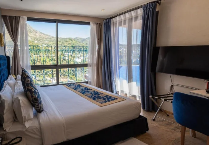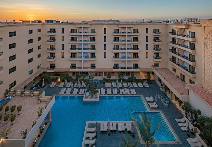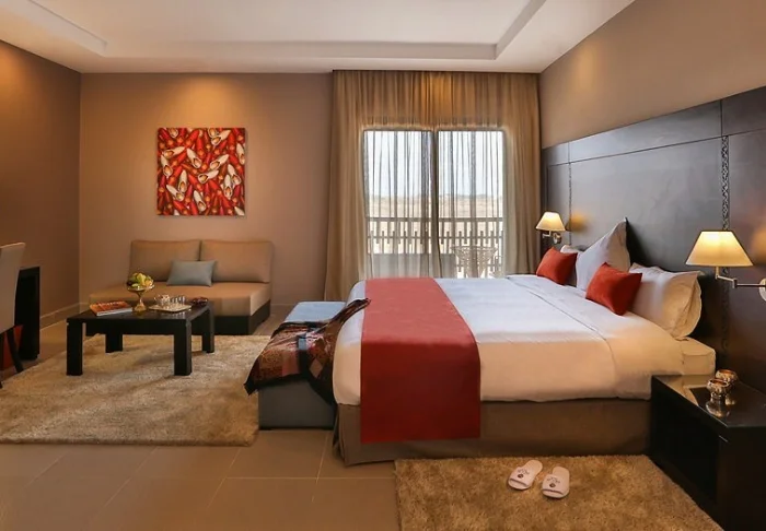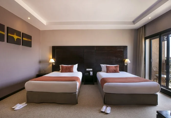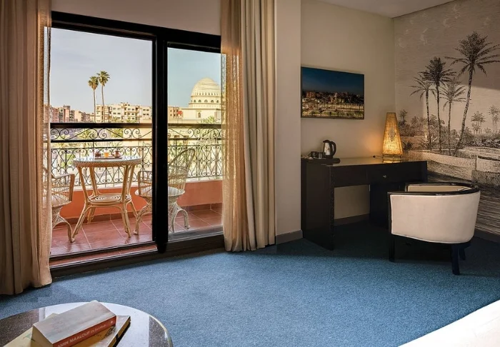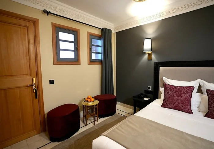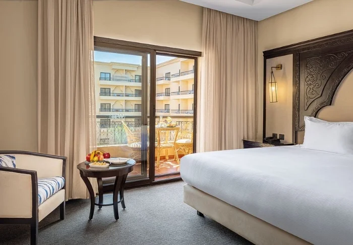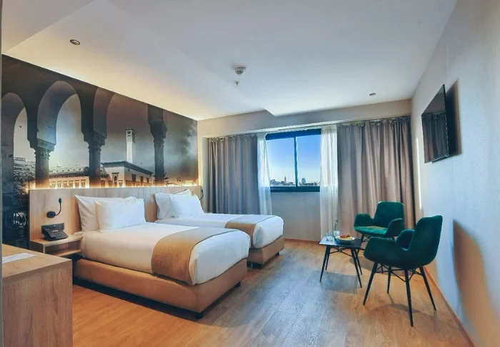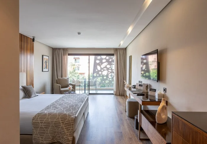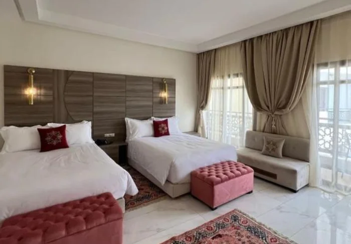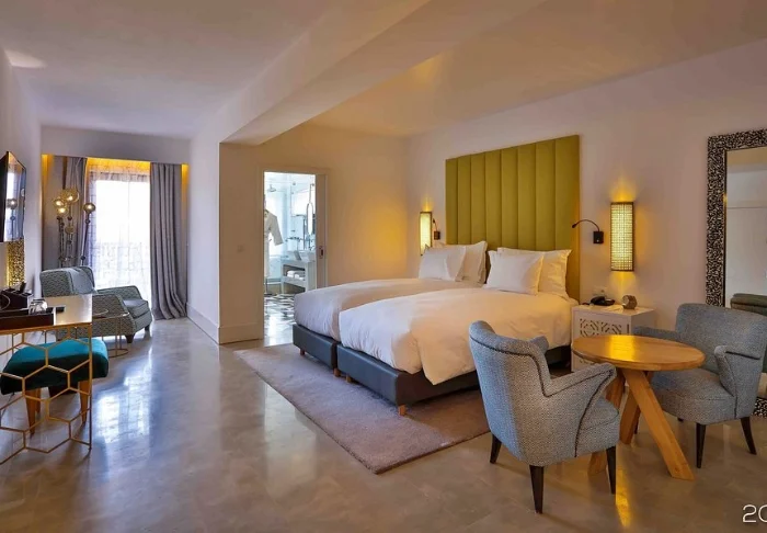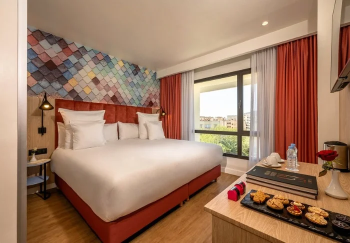 The hotel offers 115 rooms, each decorated in a modern style with a touch of traditional Moroccan architecture. All rooms come equipped with air conditioning, a minibar, a smart TV, and complimentary Wi-Fi.