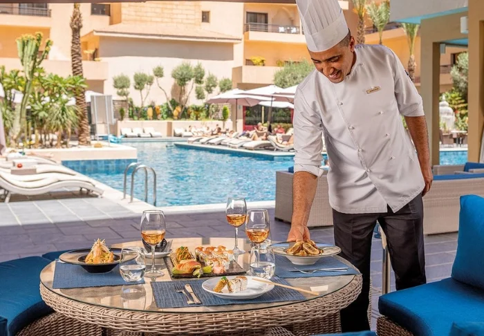 In the hotel’s restaurant, Moroccan tradition blends with international flavours — often with “live cooking” or tapas.
