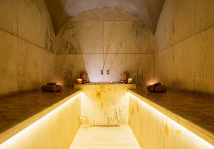 In the hotel’s spa, you’ll find an indoor heated pool, sauna, and hammam, and you can also book massage treatments.